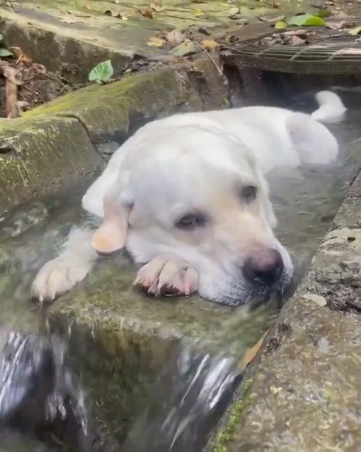 Este perro dominó por completo el arte de la relajación total y nos da un claro ejemplo acostándose en medio del caudal de un arroyo. Vida soñada.