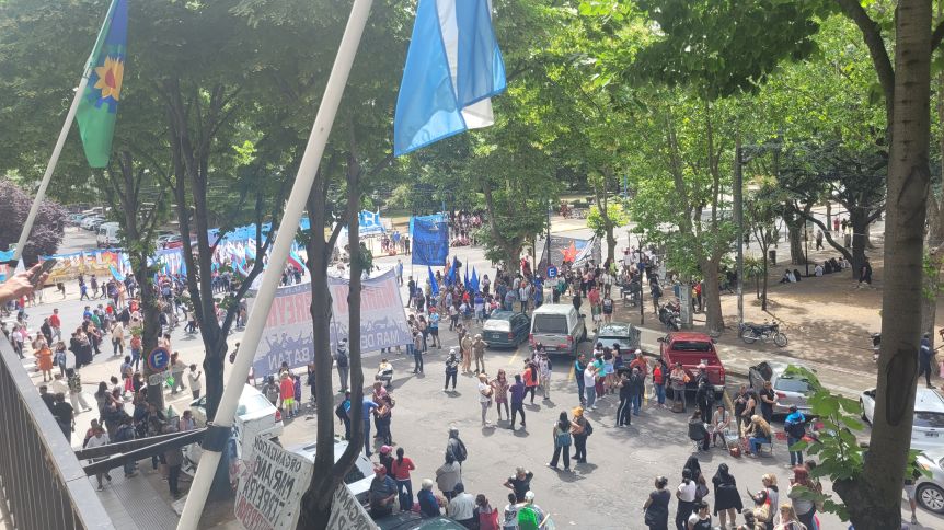 Mientras puertas adentro avanzaba la ceremonia, en el exterior el clima era otro. Organizaciones sociales coparon la Avenida Luro en una jornada que fue parte de una convocatoria nacional, pero con fuerte tinte local. Tras concentrar en Plaza Rocha, marcharon hacia el Palacio Municipal para exigir definiciones al gobierno: actualización del Salario Social Complementario, recomposición de la AUH, un bono de fin de año, reactivación de obras paralizadas en los barrios y la restitución de las canastas navideñas. El tránsito quedó detenido y el edificio comunal funcionó como epicentro de un reclamo que promete mantenerse activo durante diciembre.