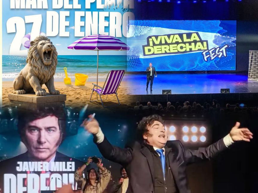 El flyer difundido en redes refuerza ese mensaje simbólico: el león que identifica al espacio libertario aparece caracterizado como uno de los tradicionales lobos marinos de la rambla marplatense, acompañado por la leyenda “Derecha Fest. Mar del Plata. 27 de enero”.