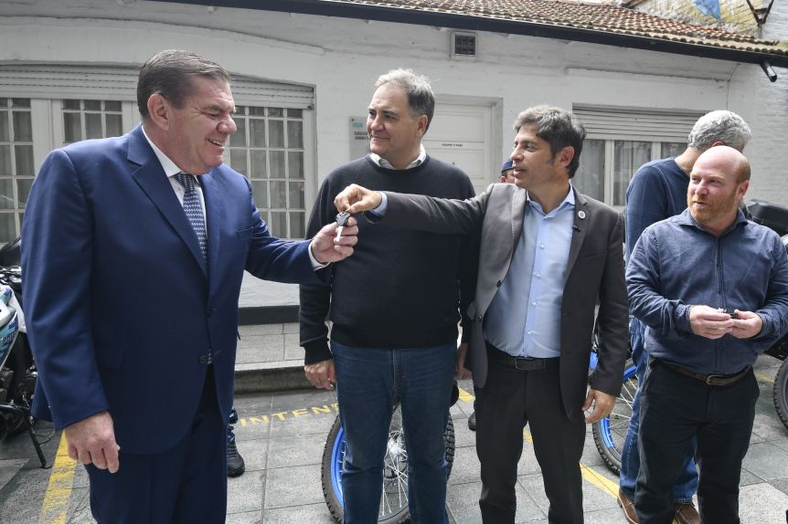 Este miércoles, y tras participar del cierre del congreso de la UOM, Axel Kicillof se dirigió a la sede de la Jefatura Departamental donde realizó la entrega de 11 motos. Dicho ámbito policial opera no solo sobre "La Feliz" sino también en Mar Chiquita, General Alvarado y Balcarce.
