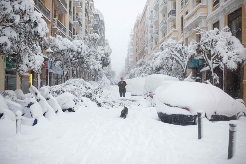 Podría ser Bostón, Nueva York o Helsinki en pleno invierno, pero no, es Madrid, barrio de Moratalaz, con sus más de 30 centímetros de nieve en algunas calles y sigue cayendo. #BorrascaFilomena 🎥 Sebastián Pino pic.twitter.com/ckXYhzNLxN