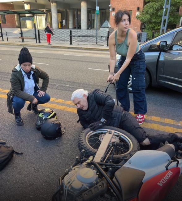 La modelo se bajó del rodado inmediatamente para asistir a la víctima y se quedó junto a él hasta que llegó la ambulancia. "Fui una de las primeras en llegar" reveló en su cuenta oficial de Instagram y agregó "hice lo que hubiera hecho cualquier persona, vi la moto impactar contra el piso y me acerqué".