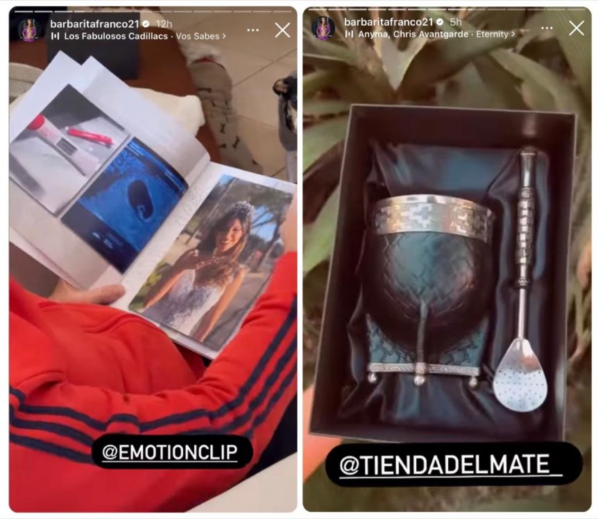Por otro lado, le entregó una caja que contenía un lujoso mate personalizado. “Una obra de arte todo hecho en plata” contó y detalló “con los nombres de sus tres amores”. En el contorno se podía observar ‘Delfi’, ‘Mery’ y ‘Sarah’. “Amo su regalo” aseguró Barby.