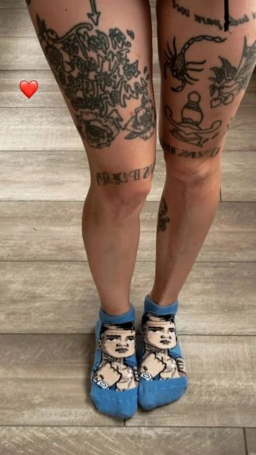 Como suele pasar, las redes sociales siempre dejan pistas. Asi fue en el caso de La Joaqui y L-Gante, donde trascendió una foto que publicó el músico y se ven las piernas de la cantante, que se reconocen por sus tatuajes, con un detalle importante: tiene puestas medias con la cara del compositor.
