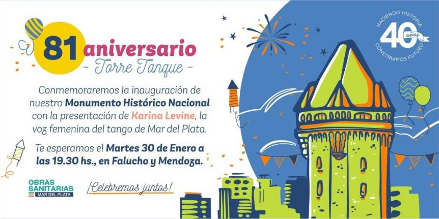 El próximo martes 30, la Torre Tanque estará de festejo, ya que se cumplen 81 años de la inauguración del Monumento Histórico Nacional. La celebración estará centrada en un show de tango.