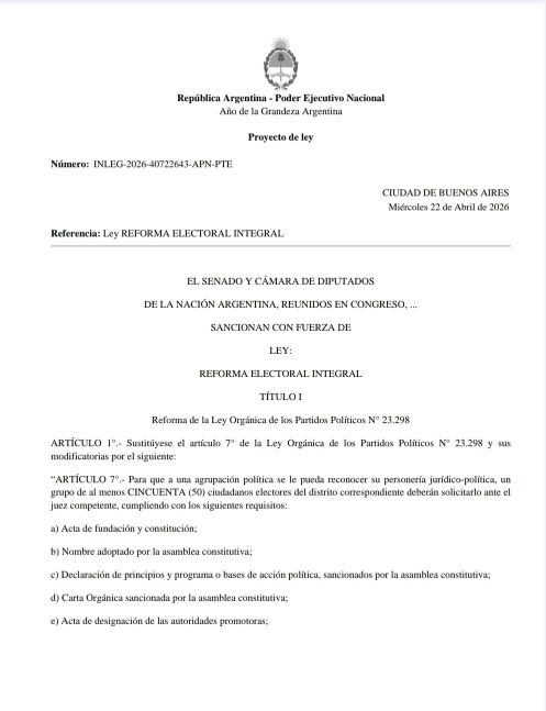 Esta iniciativa de La Libertad Avanza ya llegó al Congreso y se espera un fuerte debate parlamentario, sobre todo porque algunos bloques aliados al oficialismo mostraron reparos con la suspensión de las PASO y quieren tratar el proyecto de Ficha Limpia por fuera del paquete que presentó el Ejecutivo.