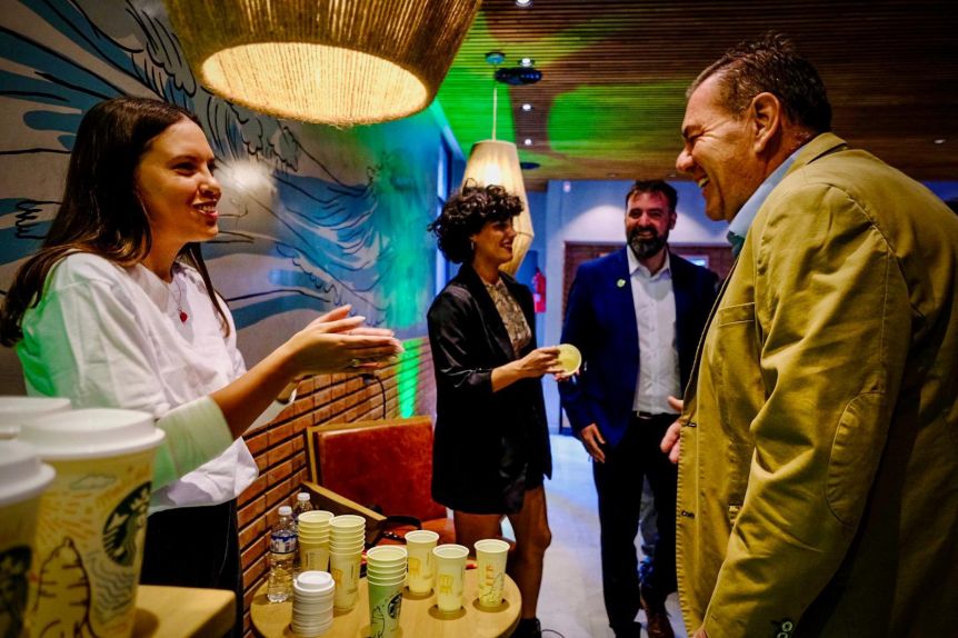Montengro en la inauguración de una importante cadena de cafeterías.El padrinazgo de espacios públicos gana terreno en la ciudadEn un contexto de ajuste y escasez de recursos, el municipio buscó alternativas para avanzar con obras necesarias en la ciudad. Una de las estrategias centrales ha sido profundizar la articulación entre el sector público y el privado, con el padrinazgo de espacios públicos como una de sus principales herramientas. El 15 de diciembre de 2020, ingresó al Concejo un proyecto de ordenanza para fomentar la colaboración entre ambos sectores a través del "Padrinazgo de Espacios Públicos", con el objetivo de impulsar la conservación, revalorización y mejoramiento de distintos puntos de la ciudad mediante convenios. La iniciativa, impulsada por el concejal del PRO Agustín Neme, fue aprobada por mayoría en octubre de 2021. Sin embargo, en abril de 2022, surgió la primera controversia en torno a este programa con el caso del “Converse Park”. El exFdT presentó una nota solicitando detalles sobre la instalación de mobiliario con publicidad en la plaza Güemes, argumentando que se había cambiado el nombre del espacio y cuestionando la promoción de una marca comercial en un espacio público. Desde el oficialismo negaron el cambio de nombre y defendieron la intervención, destacando mejoras en la cancha de básquet, los bancos y los juegos. En esta segunda gestión, el municipio ha seguido profundizando estos convenios, con casos recientes como los de la Plaza Mitre y la Plaza España, donde la colaboración con el sector privado ha permitido mejoras y mantenimiento.