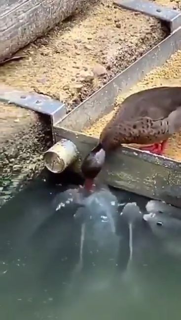 Sabemos que existe la solidaridad entre especies, pero siempre es una grata imagen verla en vivo y en directo. En un acto de camaradería, este pato comparte su alimento con un cardumen de peces.