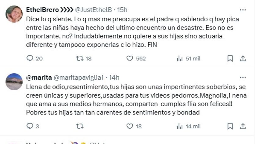 El recorte de ese video se hizo viral y la ex de Maxi López recibió fuertes críticas por exponer así a su hija, que es menor de edad, a los conflictos entre adultos.