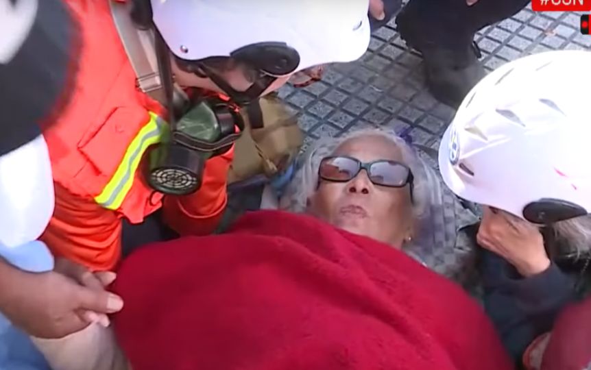 Una mujer que fue testigo de lo ocurrido dijo por televisión que tanto la jubilada como el periodista, que trabaja para un medio independiente, fueron golpeados con cascos y luego gaseados.