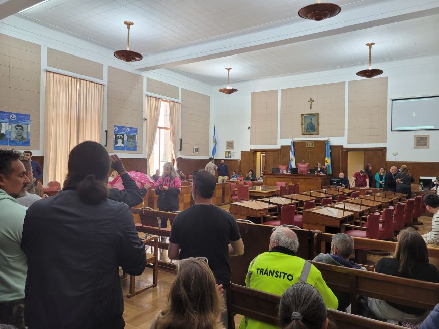 La sesión especial debía comenzar a las 9:30, pero los trabajadores municipales coparon el recinto para rechazar la adjudicación del estacionamiento medido a Boldt.
