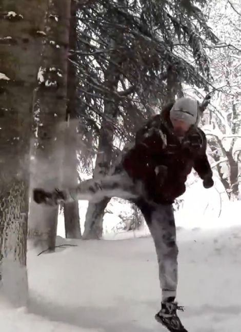 Este hombre quiso mostrar la cantidad de nieve que se junta en la copa de los árboles y pateó un tronco, dejando caer una montaña de nieve sobre él y su perro, quien no se mostró muy contento por la mini-avalancha.