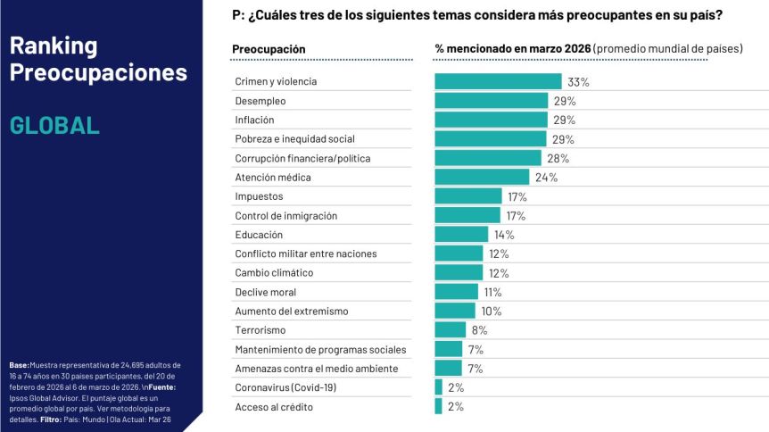 “La hipótesis para explicar estos indicadores es el ‘efecto desplazamiento’ que provocan las preocupaciones más urgentes y de impacto directo en la vida cotidiana de las personas. En Argentina, la agenda de preocupaciones está dominada por temas con repercusiones más directas en el día a día, en su rutina, en su bolsillo”, explicó a La Tecla Martín Tanzariello, gerente de comunicaciones y marketing de Ipsos.