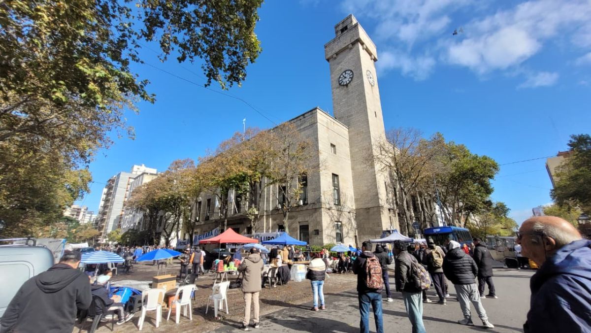La misma escena del miércoles pasado se volvió a repetir al frente del palacio municipal. Música, choripanes y ventas ambulantes, no hacen otra cosa que fortalecer el relato del oficialismo y generar dudas sobre el sindicato.