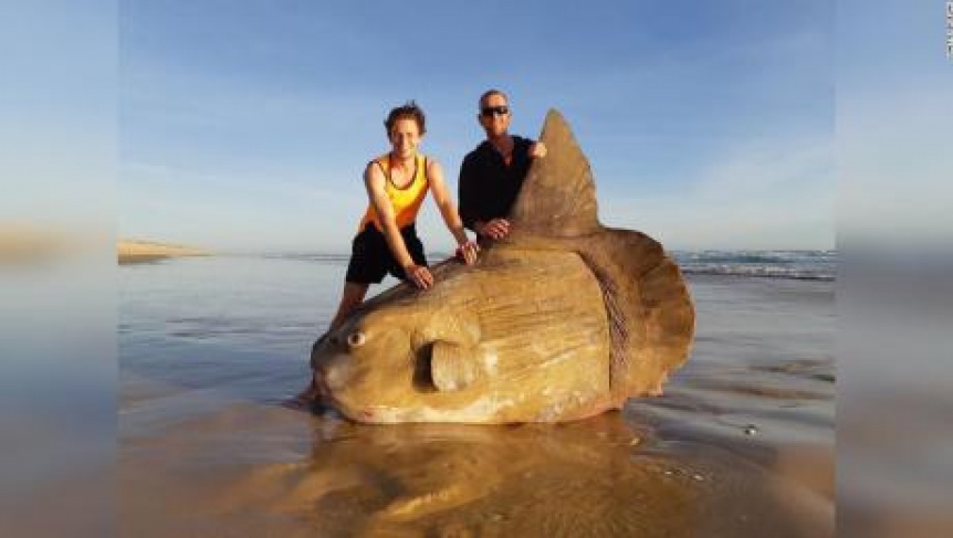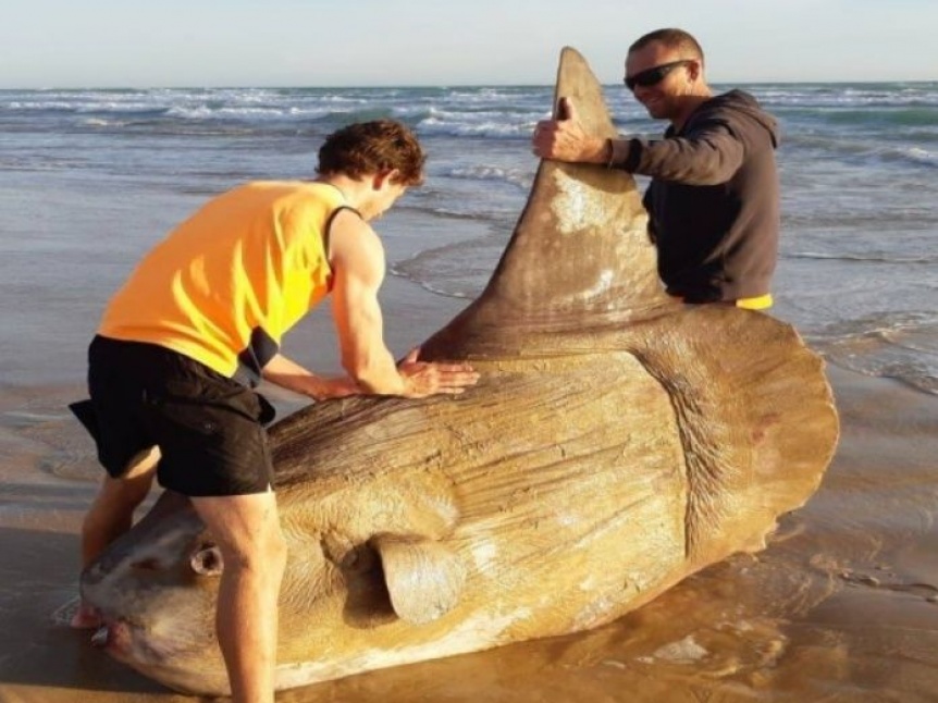 Dos pescadores encontraron un pez luna gigante... ¡casi dos metros de largo!